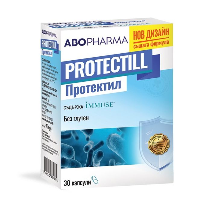 Protectill е комплексна формула, която съдържа патентована и клинично проучена съставка IMMUSE®(LC-Plasmа), арабиногалактан, бета-глюкани, ехинацея и цинк, които стимулират естествената защита на тялото на клетъчно ниво. Подготвя имунната система да реагира бързо и по подходящ начин на променящата се среда, в период на вирусни и бактериални инфекции, включително и грип. Съставката IMMUSE® (LC-Plasmа) стимулира имунните клетки за по-всеобхватна подкрепа, както при вродения, така и при адаптивния имунитет. Специалната формула IMMUSE® (LC-Plasmа) е силно устойчива на стомашения сок и жлъчни киселини. Протектил поддържа дихателните пътища, както и насърчава доброто общо състояние на организма през цялата година. Спомага за бързо възстановяване на организма при активно спортуващите. Блансираната формула е допълнена от: