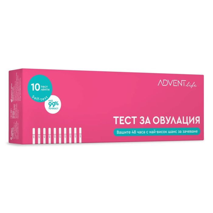 Advent Life Ovulation Test е тест за овулация, подходящ за всички жени, които планират бременност и искат да разберат повече за своя цикъл. Малко преди овулацията настъпва внезапно и рязко покачване на лутеинизиращия хормон (LH) в урината. Тестът за овулация Advent Life открива този LH пик, което е ясен сигнал, че овулацията вероятно ще настъпи през следващите 24-36 часа. Вероятността за зачеване е най-висока именно през този фертилен период.