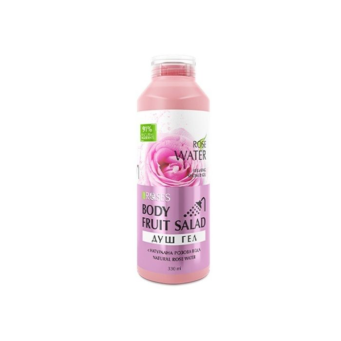 Nature of Agiva Body Fruit Salad с аромат на роза, който предлагат, изглежда като чудесен продукт, който не само почиства кожата нежно, но и я хидратира, за като същевременно предлага наслада с приятния аромат на роза. Основната съставка - 100% натурална розова вода, е изключително ценен състав, който допринася за качествата на продукта. Розовата вода е известна със своите овлажняващи свойства, които помагат за запазване на влагата в кожата, като предотвратява изсушаването й. Това може да доведе до по-мека и гладка кожа след употреба на душ гела. Агива Фрут Салад Натурален душ гел за тяло с розова вода има и регенериращи свойства, които могат да помогнат за обновяване на кожата и подобряване на нейния външен вид. Антибактериалните свойства на розовата вода могат да помогнат за борба с бактерии и предотвратяване на възпалителни процеси на кожата.