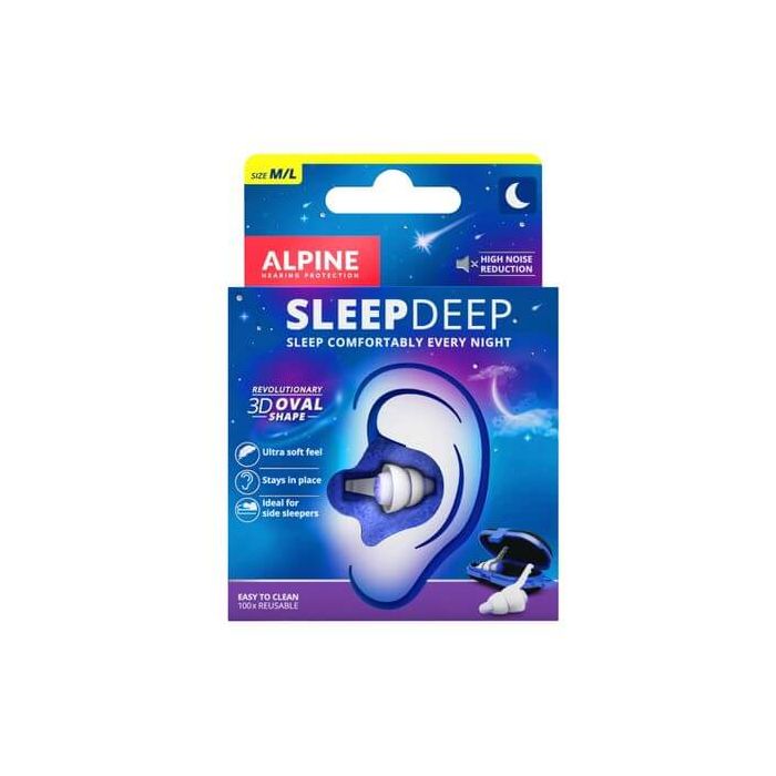 ALPINE Sleep Deep са най-изолиращите тапи за сън. Уникалната им овална форма гарантира перфектно прилягане и максимален комфорт. Освен това, гелът за намаляване на шума вътре, води до максимално заглушаване. Висококачественият материал е лесен за почистване и за многократна употреба (100 пъти), което прави тези тапи за уши най-хигиеничното и устойчиво решение. Алпин Дийп Слийп Тапи за уши за по-добър сън намаляват значително досадния околен шум (с 27 dB), като пасват идеално в ушния канал. Овалната 3D форма следва естествената извивка на ушния канал, осигурявайки сигурно уплътнение, което ефективно потиска шума. Тези тапи са идеални за дома, в хотела или къмпинга, като с тях може да се спи по гръб, настрани или по корем.