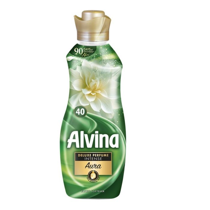 Alvina Deluxe Perfume Intense Aura е омекотител за пране с освежаващ аромат, обогатен с парфюмни капсули, които осигуряват продължително и наситено ухание. Специалната Fabric Care формула се грижи за тъканите, като изглажда влакната и придава изключителна мекота и копринено усещане при допир. Алвина Делукс Парфюм Интенз Аура Омекотител за тъкани пленява сетивата с изискан аромат на плодова свежест, цветна леха на божур и тубероза, нежно обгърнати от мекотата на памук и топлината на пачули, сандалово дърво и бял мускус.