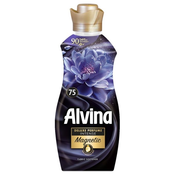 Alvina Deluxe Pеrfume Intense Magnetic е омекотител за пране с освежаващ аромат, обогатен с парфюмни капсули, които осигуряват продължително и наситено ухание /до 90дни/. Специалната Fabric Care формула се грижи за тъканите, като изглажда влакната и придава изключителна мекота и копринено усещане при допир. Алвина Делукс Парфюм Интенз Магнетик Омекотител за тъкани притежава траен аромат, който вдъхновява за романтика. Парфюмна формула със сърце от портокалов цвят, сочна праскова и кайсия, преливащи в цветист букет, нежно обгърнат от топъл карамел и мускус.