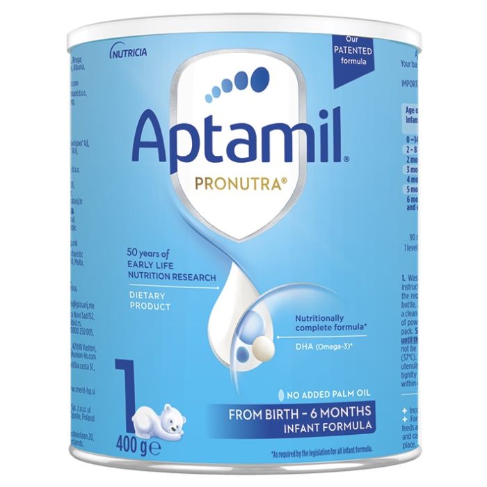 Aptamil Pronutrа 1 From Birth-6 Months Infant formula e специално създадено, за да отговори на хранителните нужди на бебето между 0 и 6 месеца. Обогатено е с DHA (омега-3)* и необходимите за растежа и развитие елементи и хранителни вещества. Подходящо е като единствен източник на хранене в остсъствието на кърмене и след задължителна консултация с лекар. Аптамил Пронутра 1 мляко за кърмачета готова формула 0-6 м е разработено именно, за да помогне за адаптацията и да осигури всички необходими хранителни съставки за бебетата от 0 до 6 месеца. Съдържа витамин C, витамин А и витамин D. Млеката Аптамил трябва да се използват само след препоръка на медицинско лице. Ако детето привикне да се храни с биберон и бутилка, може след това да откаже, да бъде кърмено. По време на хранене, детето трябва да бъде наблюдавано от възрастен. Никога не оставяйте бебето само по време на хранене! Спазвайте стриктно инструкциите за приготвяне на млеката! Ако не е приготвено правилно, има риск да навреди на здравето на вашето дете! След шестия месец е добре за детето, да започнете да въвеждате и други храни към диетата му.