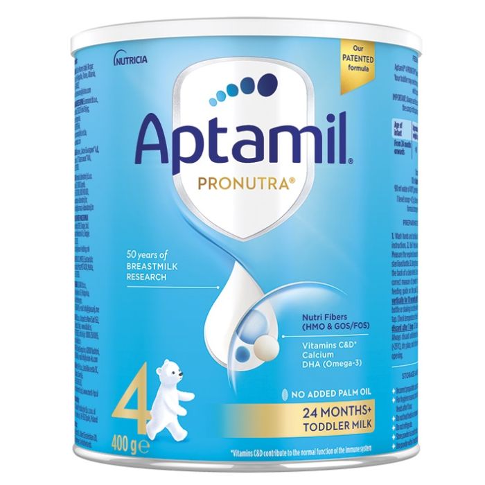 Aptamil Pronutrа 24 months+ е мляко за малки деца с обогатена формула и разнообразни съставки. Компанията прецизно е подбрала всеки един витамин и протеин, вложен в състава на млякото, за да се получи впоследствие мляко засилващо имунната система на малчуганите. Аптамил Пронутра 4 за малки деца 24 м+ съдържа DHA (Омега-3), Галактозиллактоза – олигозахарид в майчиното мляко, витамин C и витамин D, които допринасят за нормалното функциониране на имунната система. Както и специална смес Nutri влакнини GOS/FOS, която наподобява структурата на олигозахаридите, открити в кърмата и калций, който допринася за нормалното развитие на костите. Млякото се дава по лекарско предписание и има всички необходими съставки за здравословен растеж. Може да бъде част от диетата на детето, при която то се захранва с по-разнообразна храна. Млеката Аптамил трябва да се използват само след препоръка на медицинско лице. Ако детето привикне да се храни с биберон и бутилка, може след това да откаже, да бъде кърмено. По време на хранене, детето трябва да бъде наблюдавано от възрастен. Никога не оставяйте бебето само по време на хранене! Спазвайте стриктно инструкциите за приготвяне на млеката! Ако не е приготвено правилно, има риск да навреди на здравето на вашето дете! След шестия месец е добре за детето, да започнете да въвеждате и други храни към диетата му.