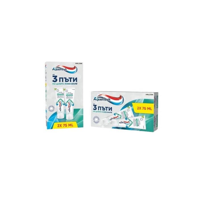 Комплектът съдържа: Aquafresh Long Lasting White Renew Избелваща паста за зъби 75 мл 2 бр.