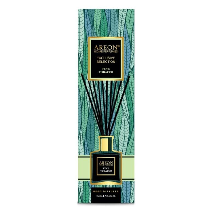 Areon Fine Tobacco Home Perfumes е дълготраен парфюм за дома, подходящ за използване както в дома, така и в офиса. Той е част от ексклузивната селекция аромати на Ареон. Комплектът съдържа фиброви пръчици и елегантна бутилка с аромат. Интензивността на аромата може да се регулира с броя на поставените пръчици. Ареон Ексклузивна селекция парфюм за дома Фин тютюн е модерна комбинация от изсушени тютюневи листа, съчетани с бергамот и иланг-иланг върху основа от ванилия и пачули.