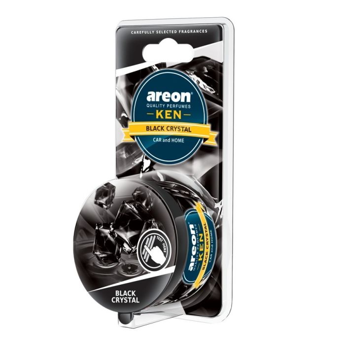 Areon Ken Black Crystal е идеален за използване в затворени пространства, включително в авотмобила. Бързо елиминира всички видове неприятни миризми и предотвратява повторната им поява, осигурявайки дълготрайно усещане за свежест. Предлага се в компактно бурканче с регулируем капак, което позволява лесен контрол върху интензитета на аромата. Ареон Кен блистер Черен кристал отдава аромат равномерно и се изпарява бавно, осигурява до 2–3 месеца ефективна ароматизация. Аромата балансира аромата на плодове с амбър и дървесни нотки.