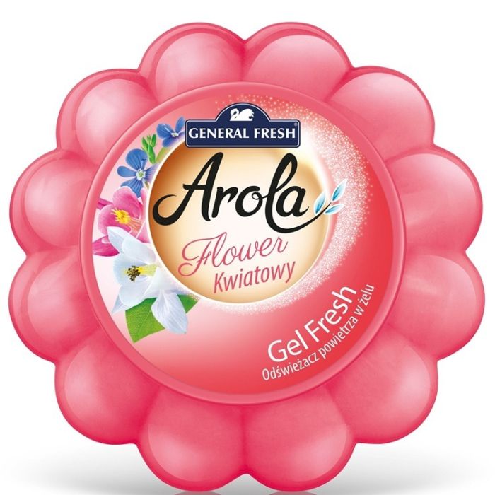 Arola Gel Fresh - Air freshener Flowers е освежител за въздух, под формата на гел. Арола Гел ароматизатор Цветя притежава флорален аромат. Силата на аромата може да бъде регулирана със завъртане на капачката.