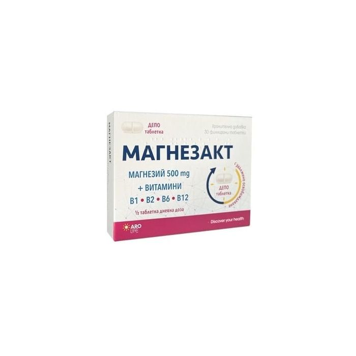 Магнезакт Депо Магнезий 500 мг и витамини B1, B2, B6 и B12 x 30 таблетки Aro Life