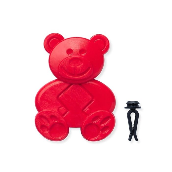 MaxxFresh Ароматизатор за автомобил мече, червен е предназначен за автомобил. Специална технология интегрира аромата при производството на фигурката и осигурява постепенно отдаване в рамките на до 45 дни. МаксФреш Ароматизатор за автомобил мече, червен е произведен от висококачествени материали, които са напълно рециклируеми, без оцветители, които да цапат и оставят следи. С щипка за окачване. Аромат - дъвка.
