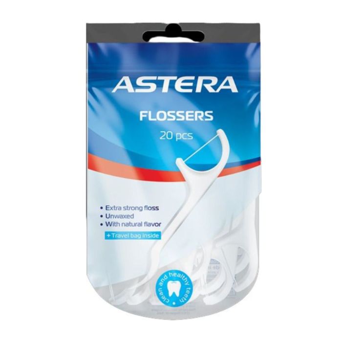 Astera Active Конци за зъби с клечка са специално създадени, за да направят възможно почистването и на най-трудно достъпните междузъбни пространства. Астера Актив Конци за зъби с клечка представляват комбинация от пластмасова клечка за зъби и опънат конец. Конците за зъби с клечка Astera Active спомагат и предотвратяването на плаката, възпаленията на венците, кариесите и неприятния дъх. Конци за зъби с клечка Астера Актив почистват и места, които обикновените конци и клечки за зъби не успяват. С натурален аромат.