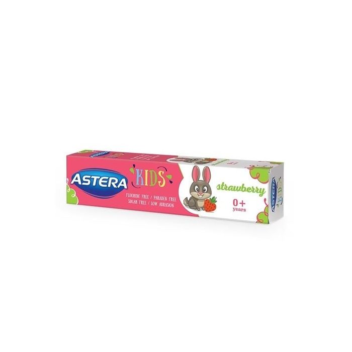 Astera Kids Strawberry Паста за зъби 0+ е паста за зъби създадена специално, за да се погрижи за първите млечни зъби на бебетата. Астера Кидс Ягода Паста за зъби 0+ спомага за бели и здрави зъбки без кариеси. Пастата почиства деликатно нежните млечни зъбки, като осигурява пълна защита от кариеси благодарение на меката си гелна формула. С примамлив вкус и аромат на ягода. Без захар. Без флуор. Лабораторно изпитана.