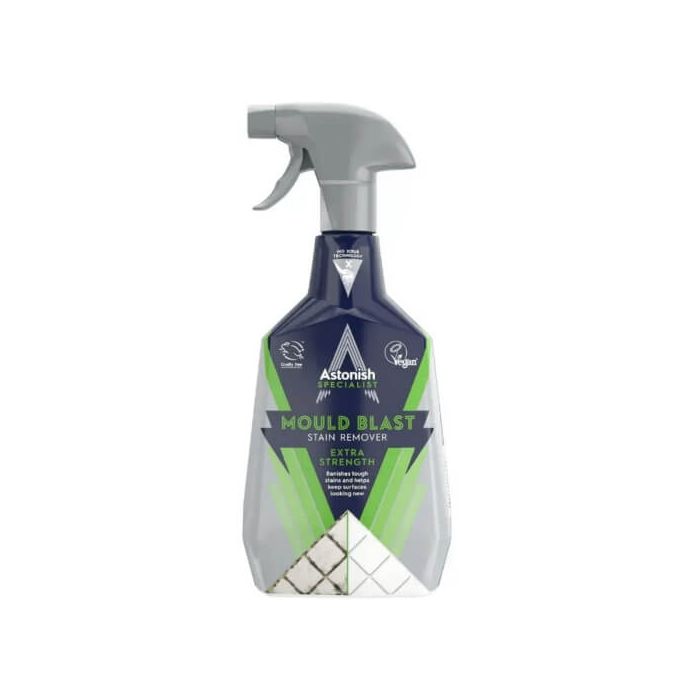Astonish Specialist Mould Blast Stain Remover е препарат за почистване, който премахва дори най-упоритите петна от мухъл и плесен. Астониш спрей против мухъл и плесен може да се използва върху стени, ПВЦ дограма, стъкло, ПВЦ завеси, фаянсови плочки, силиконови уплътнения, бетон, мивки, канали и др.