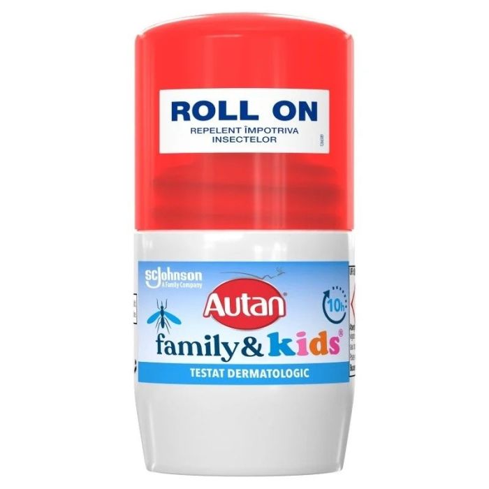 Autan Family & Kids Roll-On е формулиран да осигури ефективна защита срещу комари. Разполага с удобен апликатор за прецизно нанасяне, не оставя лепкави следи. Компактният размер улеснява пренасянето. За употреба на открито, по време на пикници, пътувания и разходки сред природата. Аутан Фемили енд Кидс Рол-он не е подходящ за деца под 6 месеца. Биоцидът е репелент, който отблъсква обикновени комари (Culex quinquefasciattis) до 11 часа, тропически комари (Anopheles aquasalis) до 8 часа, тигрови комари (Aedes albopicttis) до 6 часа, кърлежи (pIxodes i icinus) до 6 часа, хапещи мушици/куликоиди (Culicoides spp.) до 8 часа.