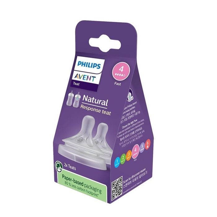 Avent Natural Response Силиконов биберон със силен поток 3М+ х 2 бр е биберон, наподобяващ естественото кърмене, тъй като работи с естествения ритъм на хранене на бебето. Това улеснява комбинирането на кърменето и храненето с бутилка. Биберонът има уникален отвор, който освобождава мляко само когато бебето пие активно. Така че, когато спре, за да поглъща и диша, млякото също спира. Широкият, мек и гъвкав биберон е проектиран да имитира формата и усещането на гърдата, като помага на бебето да засмуква и да се храни удобно. Авент Нейчаръл Риспонс Силиконов биберон със силен поток 3М+ х 2 бр има клапа против колики, която е проектирана да държи въздуха далече от коремчето на бебето по време на хранене, за да помогне за намаляване на коликите и дискомфорта. Отворът на биберона е проектиран да освобождава мляко само когато бебето се храни. Така че можете уверено да избегнете загубата на мляко – независимо дали сте у дома, или в движение. Не съдържа бисфенол A.