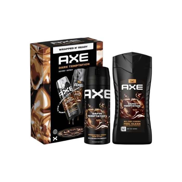 Комплектът съдържа: AXE Dark Temptation Деo спрей за мъже 150 мл 1 бр + AXE Dark Temptation Душ гел 3в1 за мъже 250 мл 1 бр.