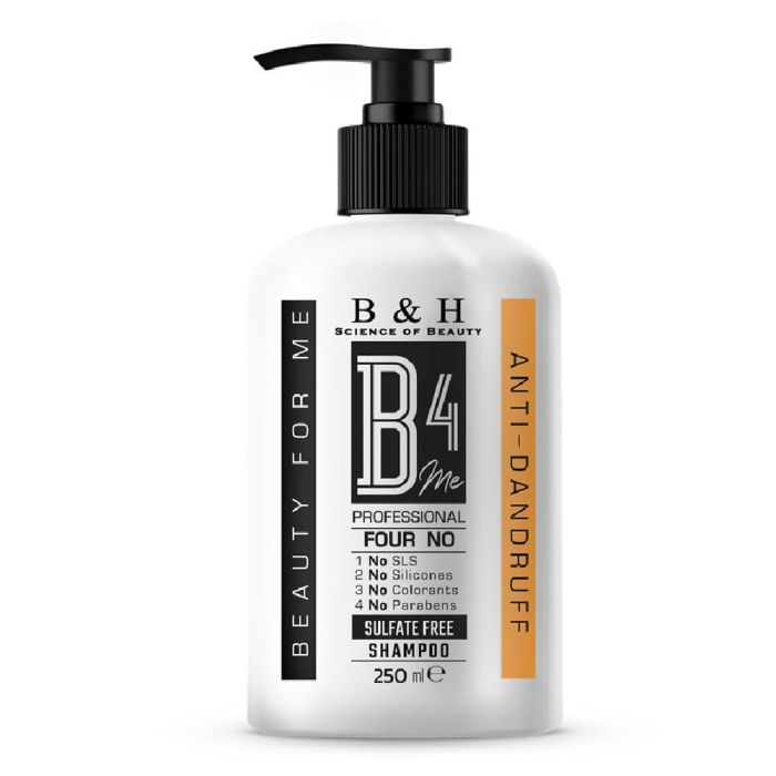 B4Me Anti-Dundroff Sulfate Free Shampoo е специална формула против пърхот, която не съдържа сулфати. В състава са включени повърхностно активни вещества, които не дразнят и не изсушават кожата на главата, и активни елементи в борбата с пърхота, като пироктон оламин и прополисов екстракт. Пироктон оламин има активно действие против широк спектър бактерии, включително и тези, които са причина за образуването на пърхот. Спомага за предотвратяването на себореен дерматит и допринася за баланса на себума. Екстрактът от прополис има антисептично действие и подсилва ефекта на пироктон оламина в борбата срещу пърхота. B4Me Безсулфатен шампоан против пърхот почиства добре скалпа и косата, като ограничава омазняването.