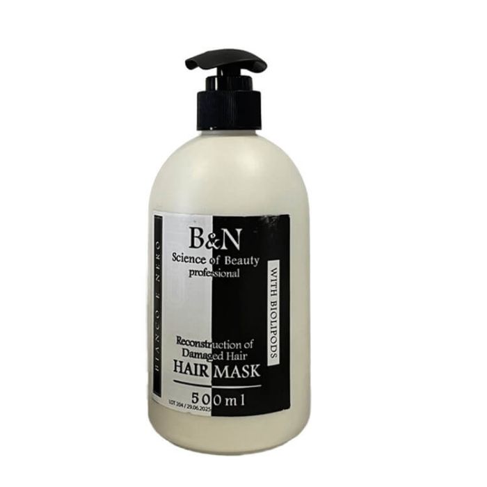 B&N Reconstruction of Damanged Hair Mask e маска за увредена коса. Формулирана с кокосово масло, натурален гуар и конопено масло тя стимулира растежа, заздравява корена, подобрява микроциркулацията на скалпа и спомага изглаждането на структурата на косъма. Богата на подхранващи вещества, омега мастни киселини, витамини D и Е. Би енд Ен Реконструираща маска за увредена коса има интензивно действие, помага за цялостно възстановяване на косата и подкрепя нейния растеж. Маската е обогатена с биолипиди, спомагащи и укрепващи липидния слой на косъма. Помага за възстановяването на микробиома на скалпа и намалява трансепидермалната загуба на вода.
