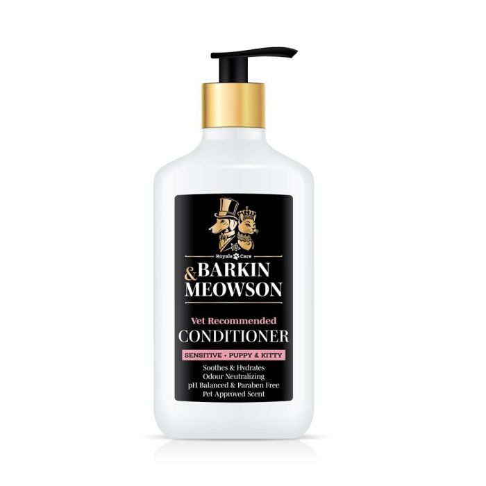 Barkin&Meowson Conditioner Sensitive Puppi & Kitty е балсам за кучета и котки, бебета кученца и котета с чувствителна кожа. Съдържа екстракти от овес и памук, които подхранват и успокояват кожата, като спомагат за мекотата на косъма. Баркин и Мяусън Балсам за кучета и котки с чувствителна кожа е с деликатен аромат, който не дразни чувствителното обоняние на вашите любимци, като същевременно предотвратява неприятните миризми. Без съдържание на сулфати и парабени, с балансирано pH.