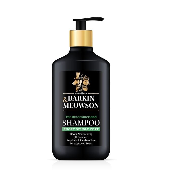 Barkin&Meowson Shampoo Short Double Coat е шампоан за кучета с къс косъм с подкосъм, като лабрадори, джак ръсел териери, бигъли, мопсове, ротвайлери и др. Формулиран с кератин и ниацинамид, той заздравява косъма и спомага за намаляване на падането на косми и скубането на козина, като същевременно почиства ефективно в дълбочина. Баркин и Мяусън Шампоан за кучета с къса двойна козина е с деликатен аромат, който не дразни чувствителното обоняние на вашите любимци и успешно премахва неприятните миризми. С балансирано pH, без съдържание на сулфати и парабени.