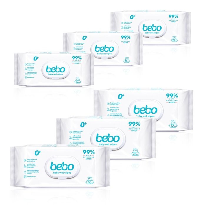 Bebo Мокри кърпи 99% вода с капак 6 х 72 бр Комплект