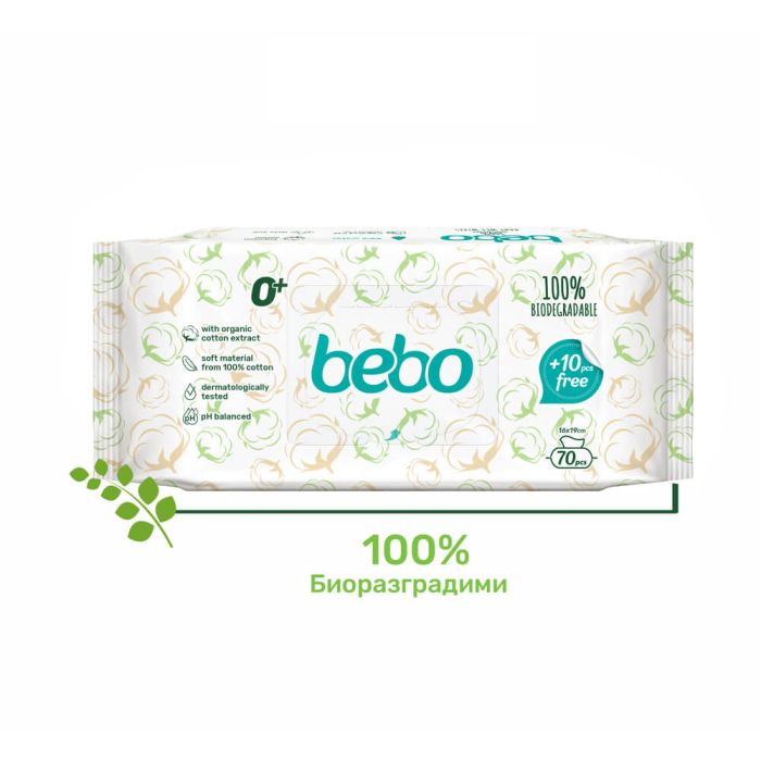 Bebo Биоразградими влажни кърпички 99% вода х 70+10 бр
