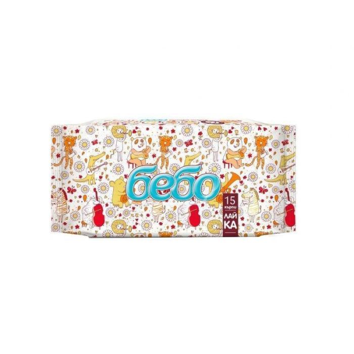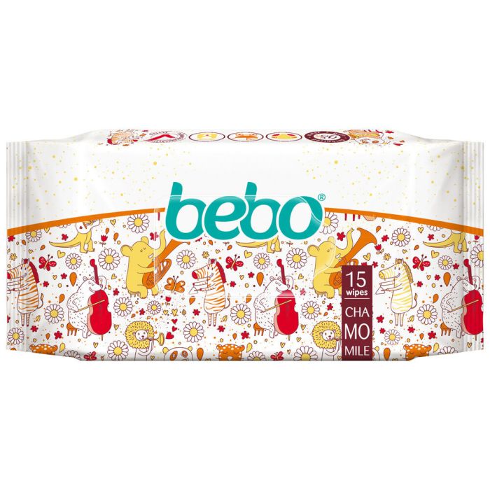 Bebo Chamomile са подходящи за използване от първия ден след раждането, създадени специално за чувствителна кожа. Бебо Мокри кърпи лайка са създадени от изключително мека и деликатна материя, която нежно почиства и освежава бебешката кожа без да предизвиква раздразнения. Кърпичките не съдържат аромати и алкохол и спомагат за възстановяване на нормалното Ph на чувствителната бебешка кожа. Формулата им съдържа естествен екстракт от лайка, който притежава успокояващо действие. Овлажнени с дейонизирана вода, с 9 нив ана пречистване. Кърпичките са подходящи за използване при смяна на пелените, за почистване на лицето и ръчичките на бебето, при разходка навън, след хранене и т.н. Дерматологично тествани.