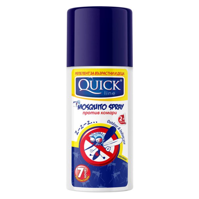 Quick Line Спрей лосион против комари е биоциден продукт, осигуряващ защита от комари и кърлежи до 8 часа. Подходящ е за възрастни и деца над 2 години, което го прави удобен за цялото семейство. Quick Line Spray lotion against mosquitoes има иновативна формула с активно репелентно действие. В удобна за хващане опаковка със спрей помпа. Без аромат. Дерматологично тестван продукт.