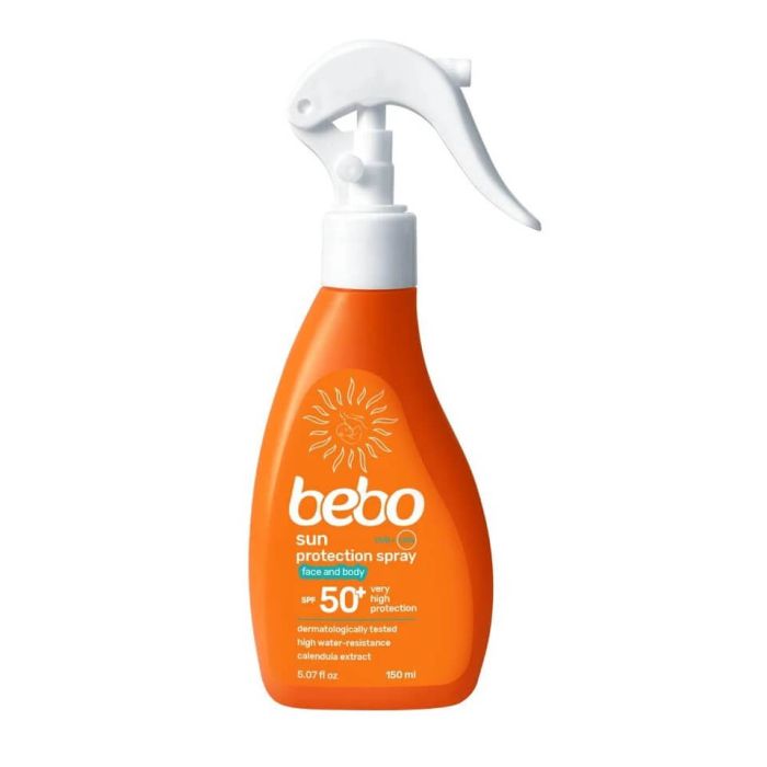 Bebo Sun protected spray SPF50+ предлага широкоспектърна защита, специално съобразена с потребностите на бебета и деца. Специално подбраните UV филтри предпазват ефективно от слънчево изгаряне и оксидативен стрес. Тази емулсия включва филтър за защита в UVA II зоната, където множество други филтри не достигат. Невенът успокоява и регенерира деликатната кожа, а богатият емолиентен състав я подхранва и омекотява. Лесно се нанася и бързо попива, без да оставя бели следи или петна. Формулата на Бебо Слънцезащитна емулсия SPF50+ е с висока водоустойчивост и е дерматологично тествана. Хипоалергенен, дерматологично тестван продукт без парабени.