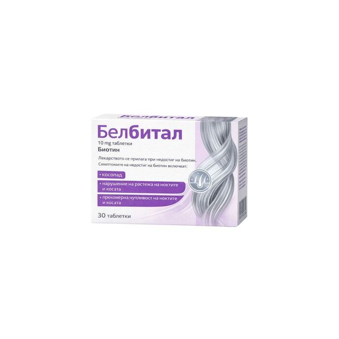 Белбитал е лекарствен продукт, съдържащ биотин (витамин B7). Той се използва при състояния, свързани с недостиг на биотин в организма, изразени под форамата на косопад, чупливи нокти и нарушения в растежа на косата и ноктите. Биотинът участва в метаболизма на протеините и подпомага образуването на кератин, който е основен структурен компонент на косата и ноктите. Белбитал може също да спомогне при кожни възпаления, локализирани около очите, носа и устата.