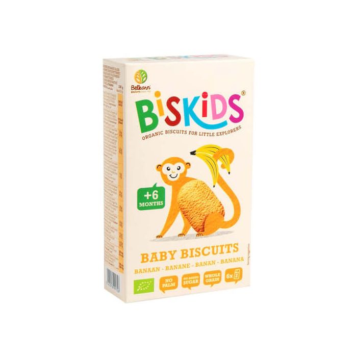 Belcorn Био детски бисквити с вкус на банан са подходящи за бебето след 6-ия месец, не съдържат палмова мазнина и са произведени с натурални съставки. Белкорн Био детски бисквити с вкус на банан е подходящо да се включват в каши до момента, в който детето навърши 10 месеца. След това може да ги дадете на детето за директна консумация. Размерът на бисквитите е съобразен с малките детски ръце. Без палмово масло и добавена захар.