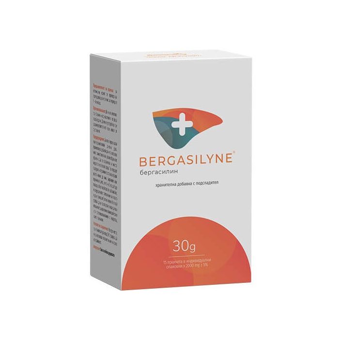 Bergasilyne е комплексна формула с холин, витамини, фосфолипиди, SAMe и натурални екстракти от бял трън, артишок и бергамот за поддържане нормалната функция на черния дроб, нервната и имунната системи, както и нормалното протичане на метаболизма и намаляване на чувството на отпадналост и умора. Бергасилин е удобна за прием форма - сашета. С приятен вкус на портокал. Без ГМО. С подсладители.