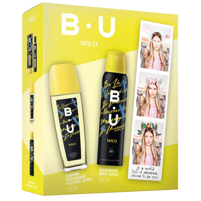 Комплектът съдържа: B.U. Wild Парфюмен спрей за тяло 75 мл 1 бр + B.U. Wild Дезодорант спрей за жени 150 мл 1 бр.