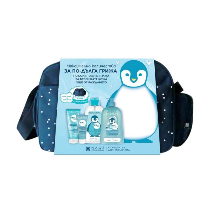 Комплектът съдържа: Bioderma ABC Derm Измиващ гел 3в1 1000 мл 1 бр + Bioderma ABC Derm Почистващ мицеларен разтвор 1000 мл 1 бр + Bioderma ABC Derm Хидратиращо мляко за лице и тяло 200 мл 1 бр + Bioderma ABC Derm Крем при подсичане 75 мл 1 бр + Подарък: чанта 1 бр + Подарък: постелка за повиване 1 бр.