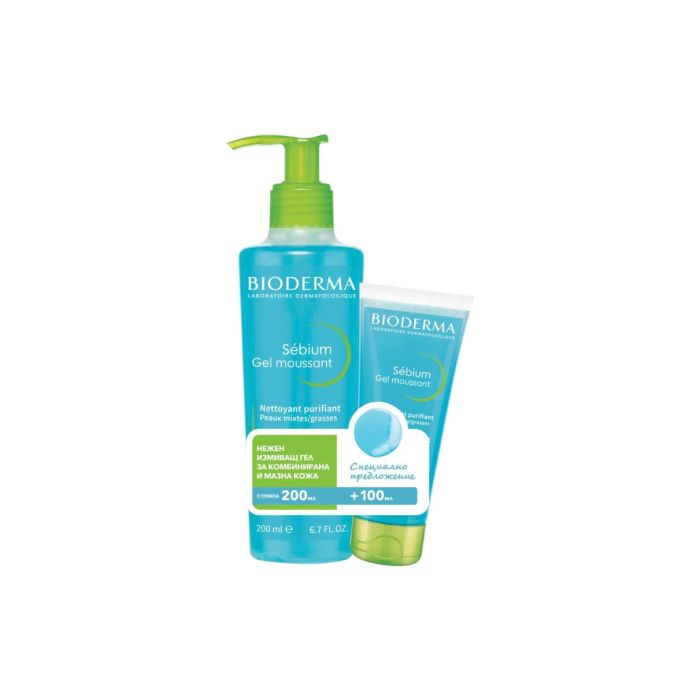 Bioderma Sebium Измиващ гел за комбинирана и мазна кожа 200 мл + Bioderma Sebium Измиващ гел за комбинирана и мазна кожа 100 мл Комплект
