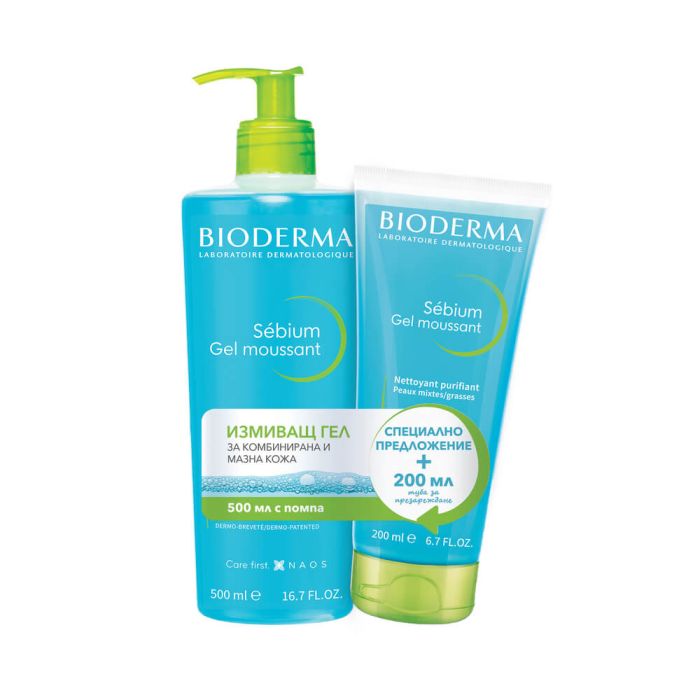 Комплектът съдържа: Bioderma Sebium Измиващ гел за комбинирана и мазна кожа 500 мл 1 бр + Bioderma Sebium Измиващ гел за комбинирана и мазна кожа 200 мл 1 бр.