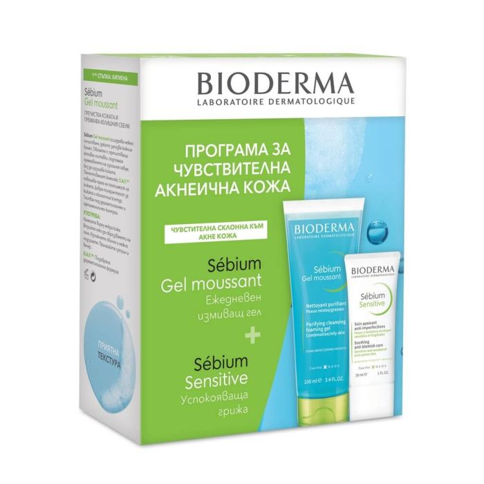Комплектът съдържа: Bioderma Sebium Sensitive Крем за чувствителна акнеична кожа 30 мл 1 бр + Bioderma Sebium Измиващ гел за комбинирана и мазна кожа 100 мл 1 бр.