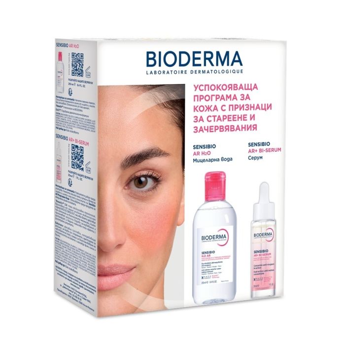 Комплектът съдържа: Bioderma Sensibio Мицеларна вода за чувствителна кожа 250 мл 1 бр + Bioderma Sensibio AR Двуфазен серум за лице 30 мл 1 бр.