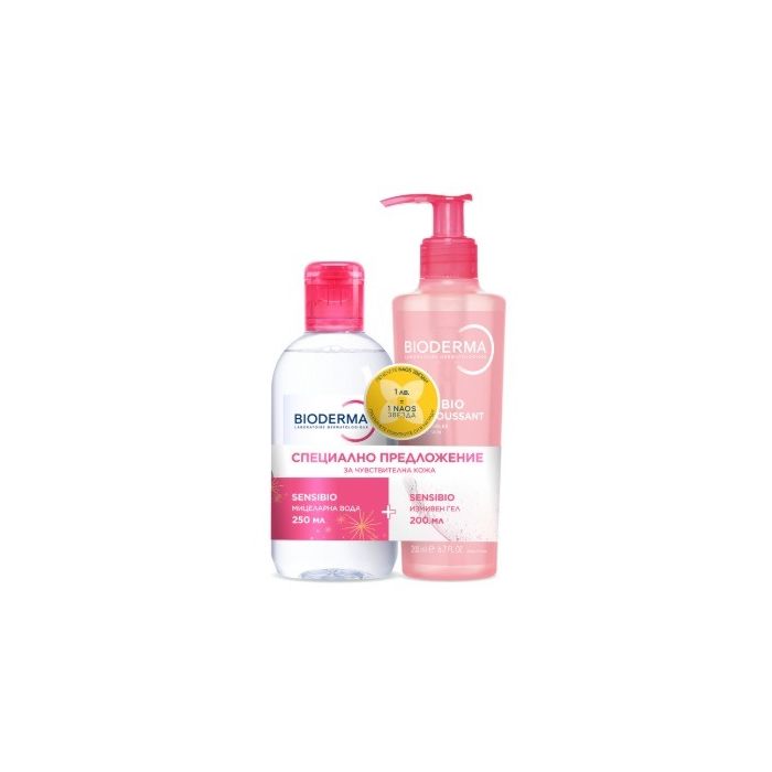Комплектът съдържа: Bioderma Sensibio Нежен измиващ гел за чувствителна кожа 200 мл. 1 бр. + Bioderma Sensibio Мицеларна вода за чувствителна кожа 200 мл. 1 бр. Комплект