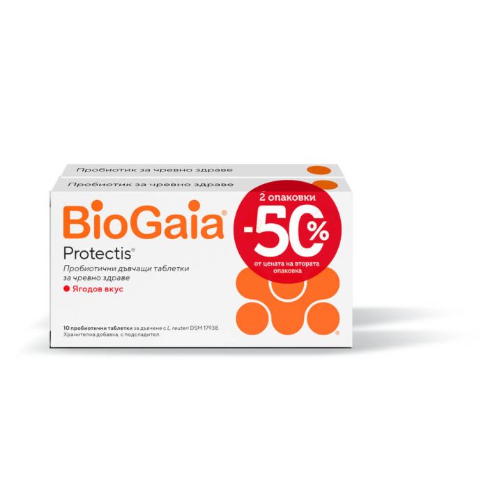 BioGaia Protectis Пробиотични таблетки за стомашно-чревно здраве с вкус на ягода 2 х 10 броя Комплект