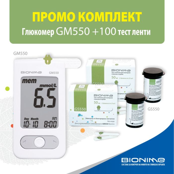 Bionime Промо-комплект Глюкомер модел GM 550 + 100 ленти