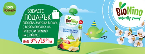 BioNino Био Плодова закуска ябълка, банан и ягоди със сметана 6М+ 90 г