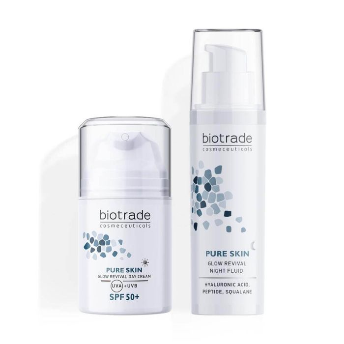 Комплектът съдържа: Biotrade Pure Skin Озаряващ дневен крем SPF50+ 50 мл 1 бр + Biotrade Pure Skin Озаряващ нощен флуид 50 мл 1 бр.