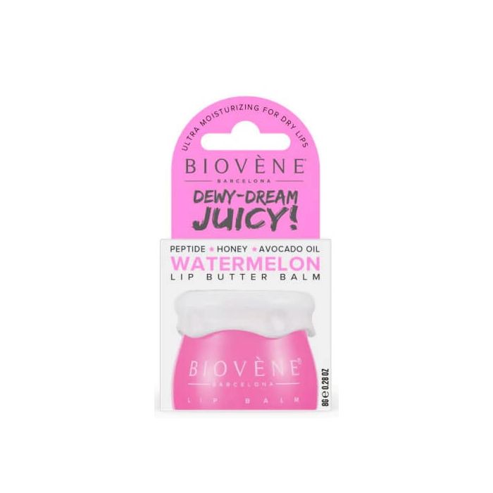 Biovene Lip balm with watermelon and peptides for freshness and softness е балсам с изключително подхранваща формула, обогатена с пептиди, екстракт от диня, мед и масло от авокадо. Превръща сухите устни в копринено меки, гладки и с естествен блясък. Специално формулиран за сухи устни, балсамът осигурява интензивна хидратация и оставя свежо, блестящо покритие – идеално за носене без грим. Пептидите помагат за укрепване и изглаждане на текстурата на устните, докато екстрактът от диня доставя основни витамини и антиоксиданти за подхранване и жизненост. Натуралният мед омекотява, а маслото от авокадо подхранва в дълбочина. Биовене Балсам за устни с диня и пептиди за свежест и мекота е перфектен за ежедневна употреба.