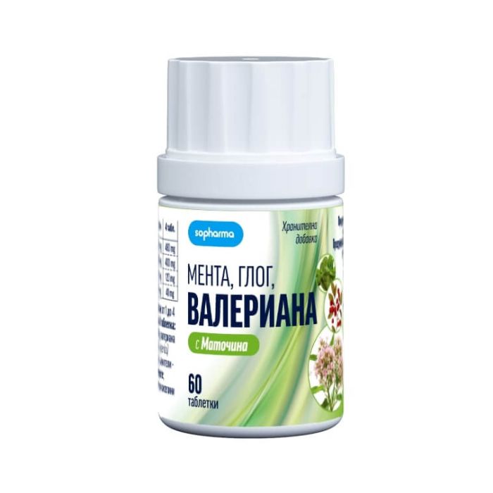 Мента, глог, валериана с маточина х 60 таблетки Sopharma