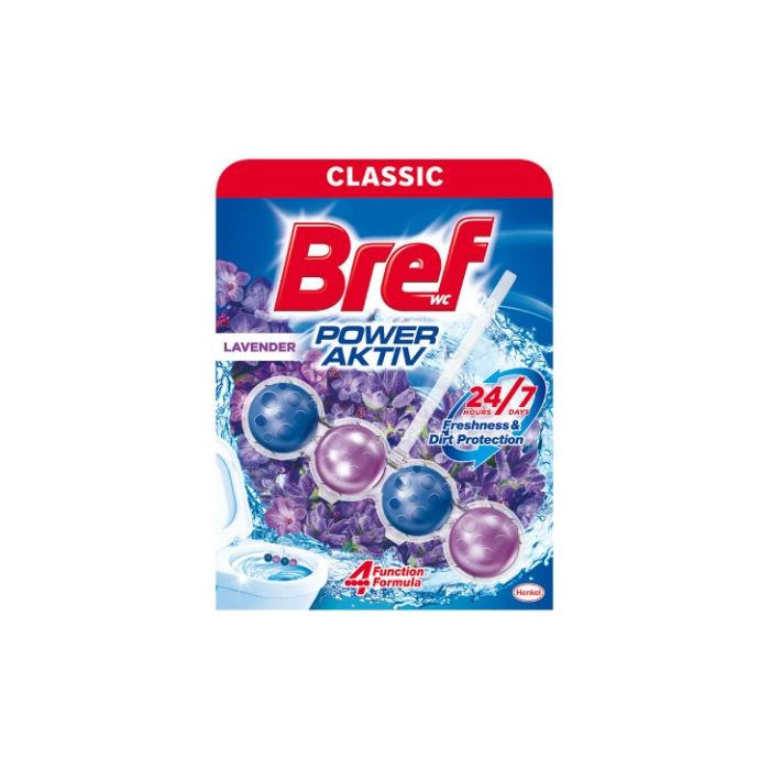 Bref Classic WC Power Active Lavender ароматизатор премахва неприятните миризми и предотвратява натрупването на варовик по тоалетната чиния. Бреф Класик Пауър Актив Лавандър е с твърда форма и отделя своя свеж аромат дълго време без да губи от силата си. Действие 24/7.