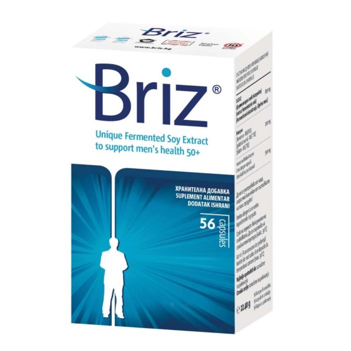 Briz За добро мъжко здраве 56 капсули SE-cure Pharmaceuticals е висококачествена и ефективна хранителна добавка, подпомагаща здравето на мъжа в напреднала възраст. Бриз За добро мъжко здраве 56 капсули СЕ-кюр Фармасютикълс се отличава със специалната си формула с екстракт от соя, ферментирал по уникална патентована технология, благоприятстващ здравето на мъжа. Този уникален ферментационен процес има за цел да увеличи бионаличността на полезните активни съставки в соята. Благотворният ефект се усеща още след 1 месец прием. Добавката спомага за преодоляване на проблеми като отслабена и тънка струя при уриниране, силни позиви за уриниране през целия ден, нужда от уриниране няколко пъти през нощта, усещане за неотложна нужда от уриниране, необходимост от напрягане, за да потече урината, урина, излизаща на капки, трудности със спирането на уринирането, чувство за непълно изпразване на пикочния мехур, въпреки че вече сте уринирали, болка или парене по време на уриниране. Причина за тези неразположения е увеличената простатна жлеза, чието състояние добавката подобрява. Така се избягва задълбочаване на проблема като силно притискане на уретрата и проблеми с бъбреците. Без ГМО.
