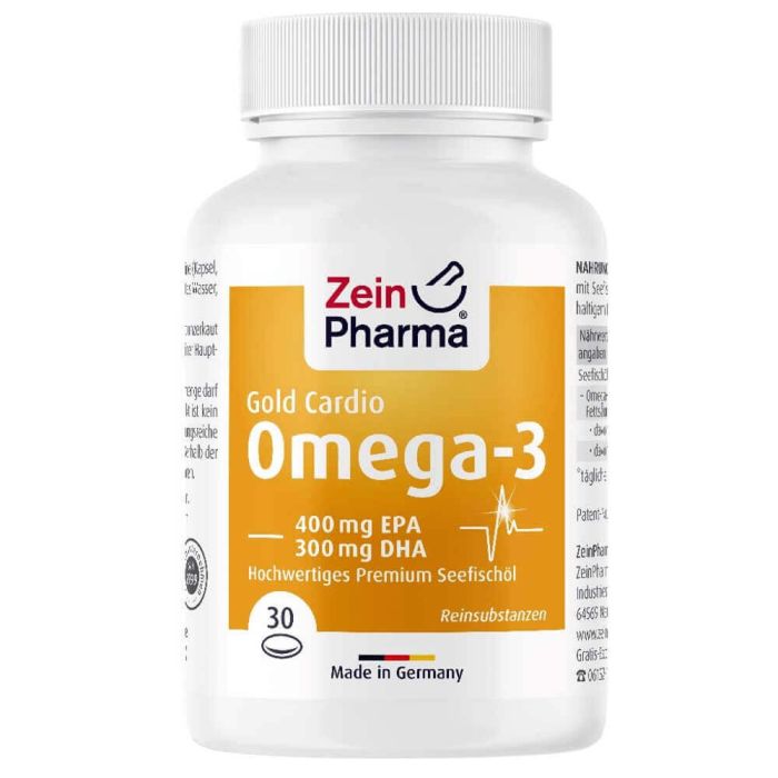 Cardio Omega-3 При висок холестерол 30 капсули представлява хранителна добавка разработена специално за здравето на сърцето. Съдържа висококачествено рибено масло от диви риби от Тихия океан, чисто от тежки метали, живак, антибиотици и др. замърсители. Добавката е комбинация от висока доза ЕРА и DHA в оптимално съотношение – 400 mg ЕРА и 300 mg DHA. Те помагат за поддържане на нормалната клетъчна и сърдечна функция и имат важно значение за работата на мозъка и за доброто зрение. Подсилват естествените защитни сили на организма и допринасят за регулиране на кръвното налягане и сърдечния ритъм, като оптимизират нивото на холестерол и триглицериди в кръвта. Употребата на Кардио Омега-3 при висок холестерол 30 капсули намалява риска от поява и развитие на сърдечно-съдови заболявания. Отличителна черта на продукта са високата концентрация и чистота на рибеното масло, което се добива и пречиства по специална патентована технология.