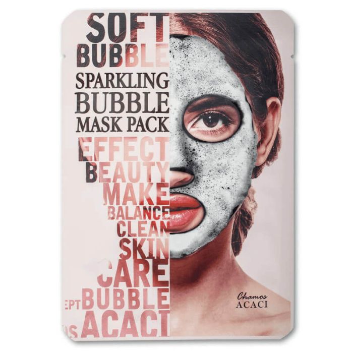 Chamos Acaci Sparkling Bubble Mask Pack е бълбукаща детоксикираща маска за лице, която дълбоко почиства порите, премахва черни точки и несъвършенства, като същевременно изглажда и освежава кожата. При контакт с лицето маската създава ефекта на мехурчета, което стимулира почистването и ексфолирането на мъртвите клетки, оставяйки кожата гладка, сияйна и подхранена. Формулата съдържа зелен чай за почистващ ефект, хидратираща и успокояваща хиалуронова киселина и алантоин, както и екстракти от сладък корен, джинджифил, шизандра и прополис, които подхранват, успокояват и повишават еластичността. Ниацинамидът и аденозинът допълнително подпомагат изсветляването на тена и изглаждането на фините линии. Чамос Бълбукаща детоксикираща маска е без парабени, фталати, сулфати, минерални масла и синтетични оцветители, подходяща за дехидратирана, уморена или чувствителна кожа, като оставя лицето чисто, подхранено и с естествен блясък.