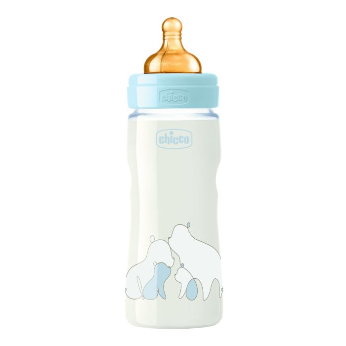 Chicco Original Touch Бебешко шише биберон за момче Стъкло 0М+ 240 мл Artsana Italia е специално разработено шише за хранене на бебето. Чико Ориджинъл Тъч Бебешко шише биберон за момче Стъкло 0М+ 240 мл Артсана Италия е изработено от висококачествено стъкло и е в бледо син цвят, подходящ за момче. Шишето разполага с мек и създаващ естествено усещане биберон, направен от 100% натурален каучук. Широката му основа се приспособява към бебешките устни, улеснявайки сученето. Подходящо за бебетата още през първите дни след раждането.